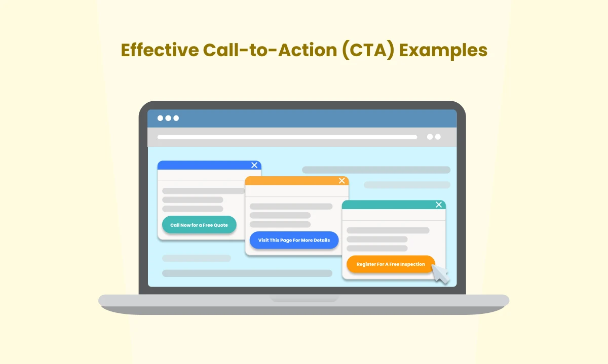 Call-to-Action or CTAs are prompts or instructions that encourage users to respond or take action. Phrases such as “call now for a free quote,” “visit this page for more details,” “register for a free inspection,” etc., are all CTAs.